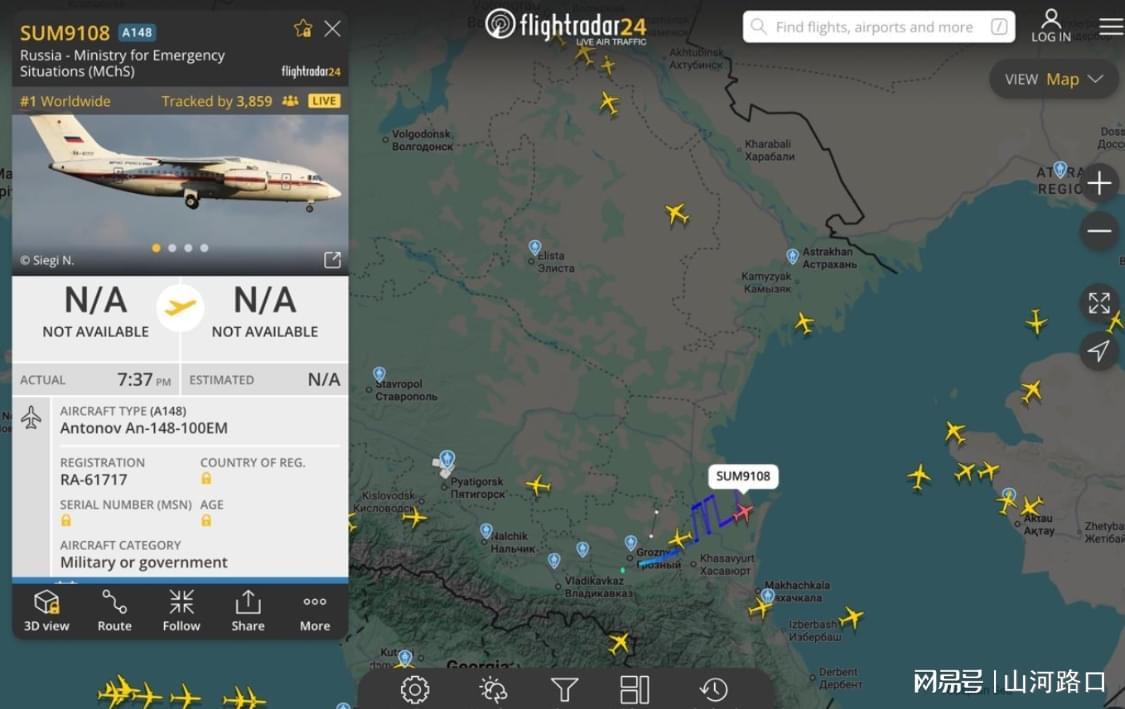 此外,一架俄罗斯紧急情况部用于医疗后送的安-148-100EM飞机(航班号SUM9108)出现在格罗兹尼。